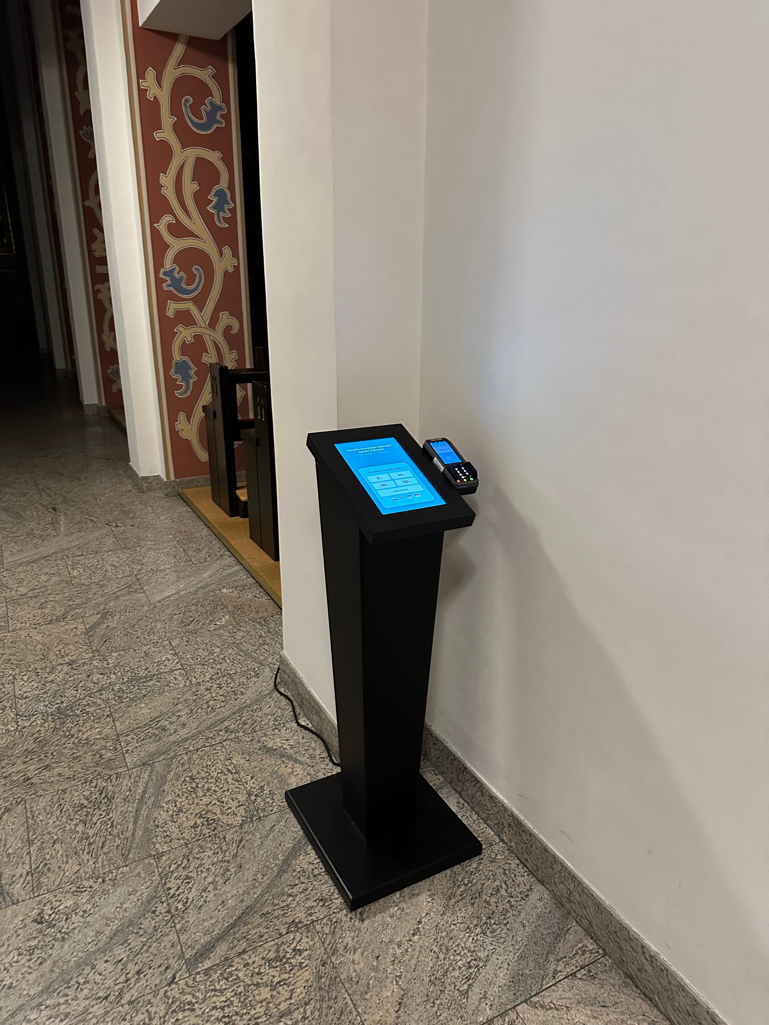 Nowoczesny ofiaromat został zaprojektowany tak, aby maksymalnie dopasować się do potrzeb parafii, instytucji czy organizacji. Jednym z jego największych atutów jest możliwość pełnej personalizacji ekranu, co sprawia, że urządzenie może być w pełni zgodne z charakterem i stylem miejsca, w którym funkcjonuje.